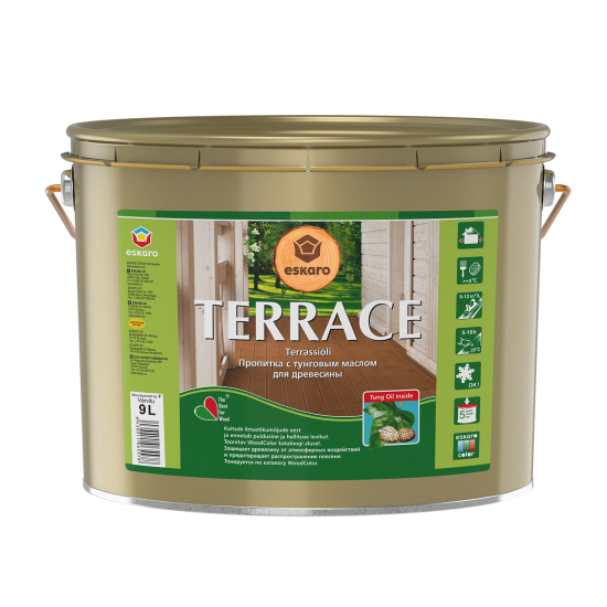 Быстро высыхает, образуя покрытие, устойчивое к механическим повреждениям и растрескиванию. Идеально подходит для обработки наружных деревянных поверхностей: террас, фасадов, ступеней лестниц, мостков и других горизонтальных поверхностей, а также перил, оград, садовой мебели и других изделий.